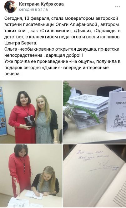 Станислав читает перед сном своему сыну "Однажды в детстве" (случайным образом эта книга попала в их семью). Она им очень нравится. И мы вместе решили устроить маленький праздник жизни для ребяток интерната. Я провела авторскую встречу, а Станислав проспонсировал закупку 40 книг "Однажды в детстве" для подарков каждому ребенку детского дома. На встрече я их подписала с личным пожеланием для каждого.